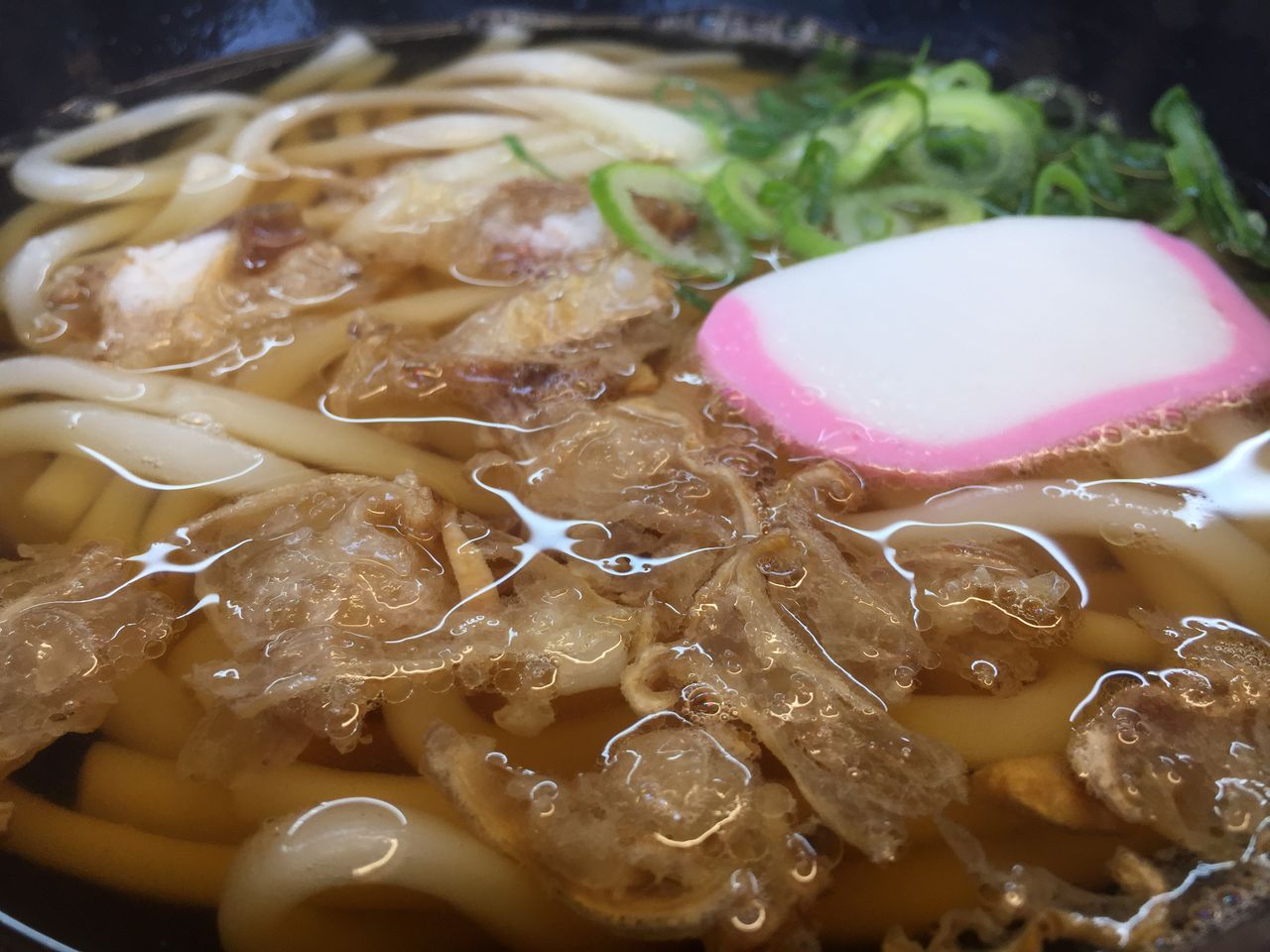 あぶらかすを1~2切れ、口に放り込んでうどんを啜る。