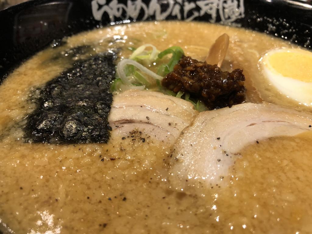 しかし、今回はちょっとスタミナを付けたかったので、生ニンニクの生しぼりが有名な「らあめん花月嵐」さんで「嵐げんこつらあめん」を食べることにしました。
